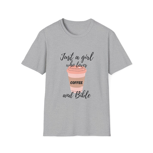 Coffee and Bible Lover Unisex Softstyle T-Shirt, Christian Shirt, Religious Tee, Caffeine Addict Top, Inspirational Clothing